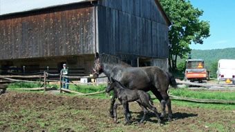 Our HorsesHere at Diamond Lane Farm we have been breeding Percherons since 2003. Our farm is located in the Allegheny Mountains of Pennsylvania. We are very proud to say that our first born, Diamond Lanes Royal Jewels, was leased by Pennwoods Percherons from Centre Hall, PA. Jewels was in the winning six horse hitch of registered Percheron mares at the national show in Indianapolis, Indiana in 2008 and the reserve world champion hitch in Toronto the same year. In 2010 she was the winning world champion hitch in Des Moines, Iowa with Tripcrest Farms from Harrison, Maine. The hitch was driven by Chad Cole of Pennwoods Percherons. A special thanks to the Coles and Jane Gray at Tripcrest Farms for leasing and showing this mare. Every spring we have between 4 and 6 babies born.